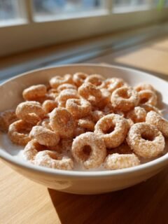 Keep in mind that the sugar content is high because of the candy coating and powdered sugar, which is totally expected for a treat like this!